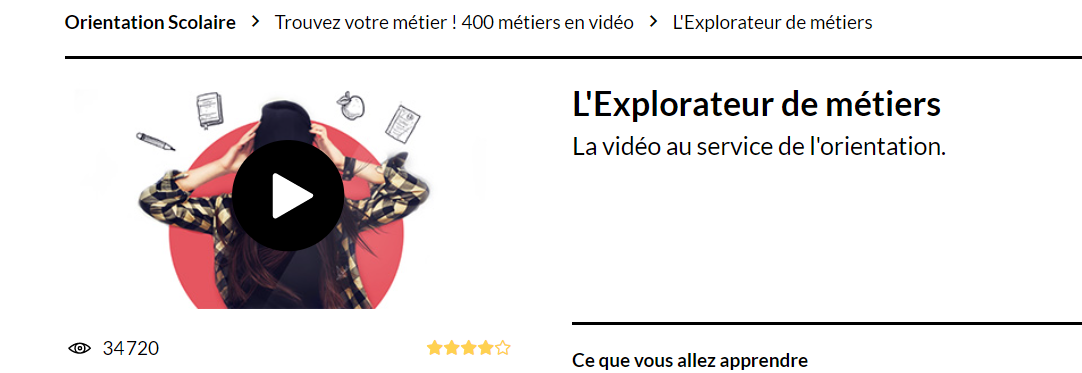 L’explorateur des métiers rassemble près de 500 métiers (ajouts et mises à jour régulières) avec des modules d’exploration, des vidéos, un Quizz métier inédit et des fiches d’information.