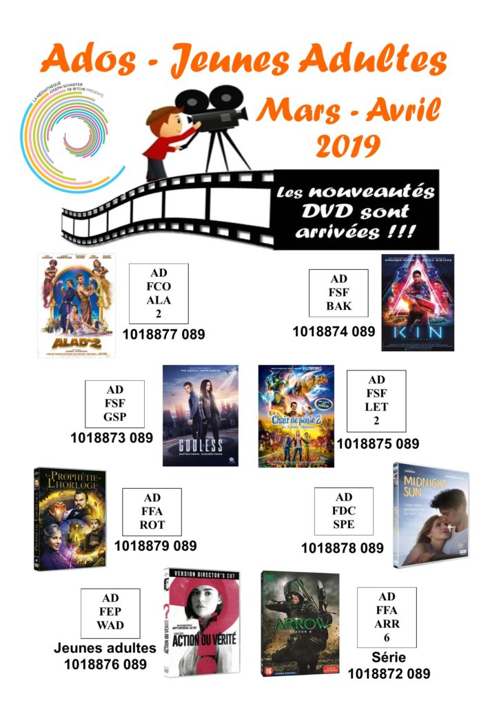 Découvrez les nouveautés DVD de mars + avril dans l’Espace DVD, sur le palier !
