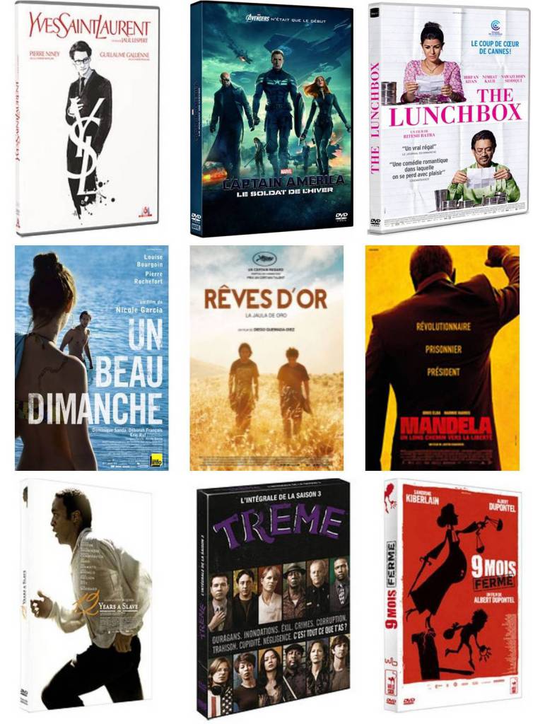 Les nouveautés DVD sont disponibles! Dans l’Espace Audio-Vidéo, retrouvez notamment 12 years a slave, 9 mois ferme, Rêves d’or, Un beau dimanche, Yves Saint Laurent, The lunchbox, Mandela, Captain America: le soldat de l’hiver et la saison 3 de Treme…