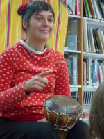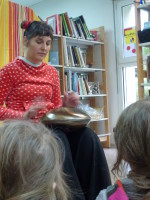 Un spectacle tendre et doux pour voyager sur l’arc-en-ciel de l’inconnu : des chansons colorées du monde entier, des objets lointains qui deviennent copains… dessinons à l’unisson un grand cœur de toutes les couleurs. (Geneviève Wendelski, conteuse)