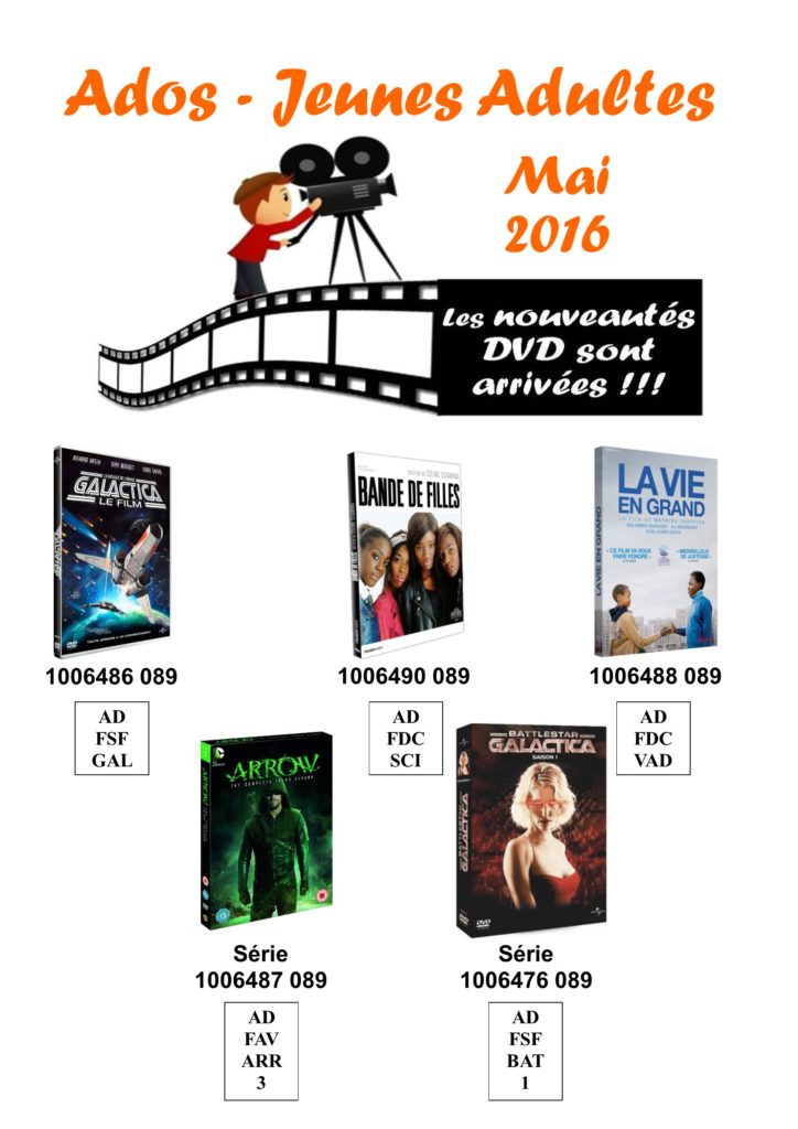 Nouveautés, Pôle Ados/Jeunes Adultes, Vidéo [ADOS-JEUNES ADULTES] NOUVEAUTES DVD DE MAI. 2 mai 2016 M3diatheque Laisser un commentaire Découvrez les nouveautés DVD de (mois) dans l’Espace Ados-Jeunes Adultes !