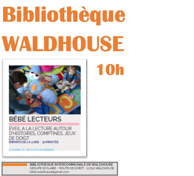- Pour les « Bébés-lecteurs », prévu le 17 novembre à 10h ou 11h : rendez-vous samedi 24 novembre à 10h ou 11h à la médiathèque Joseph Schaefer.