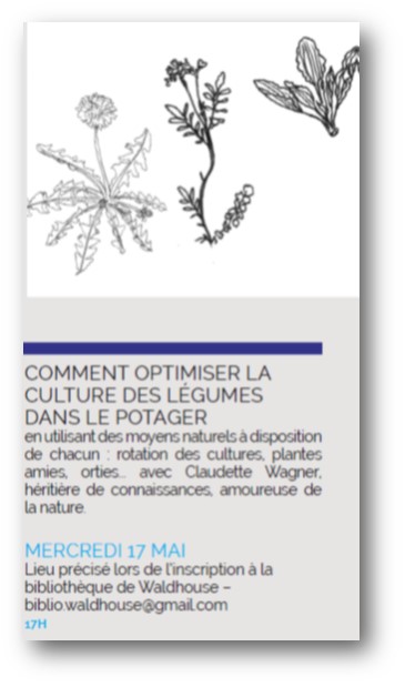 …Découvrir la nature grâce à nos 5 sens, atelier TOUCHER : chemin sensoriel (pied), boîte sensitive (main), uniquement avec des matières naturelles…Eveil de nos 5 sens, LA VUE présentation de belles photos d’oiseaux de nos jardins, L’ODORAT calendrier parfumé, reconnaître les parfums d’herbes aromatiques, L’OUIE écouter les chants d’oiseaux, LE GOÛT deviner des aliments…