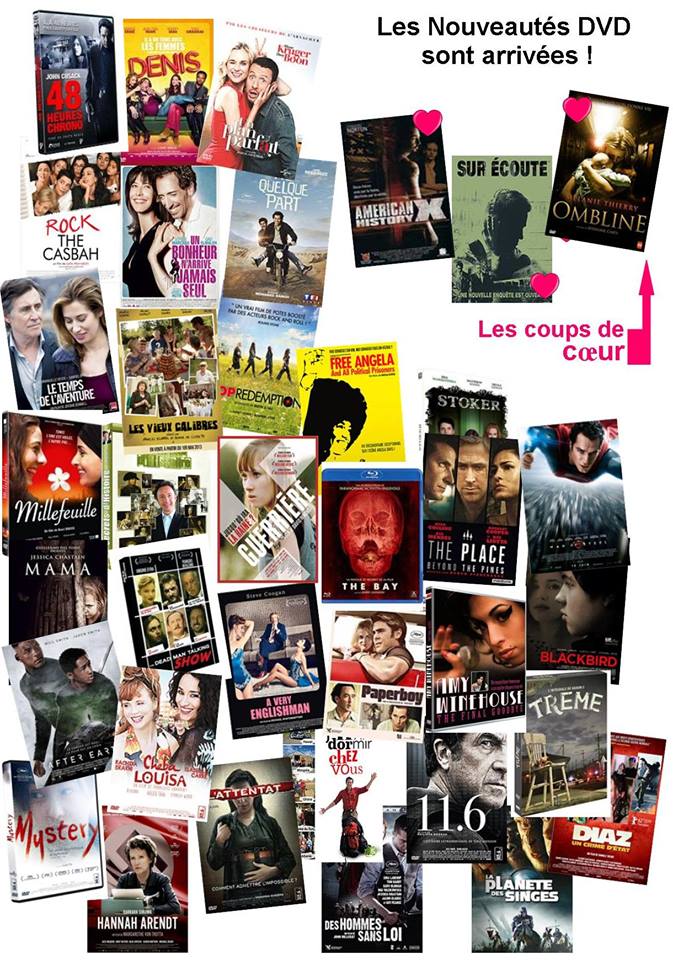 After Earth, Diaz: un crime d’état, Rock the casbah, Treme, Free Angela and all political prisoners, Sur écoute, Ombline, Paperboy, Guerrière et bien d’autres arrivent à la médiathèque.