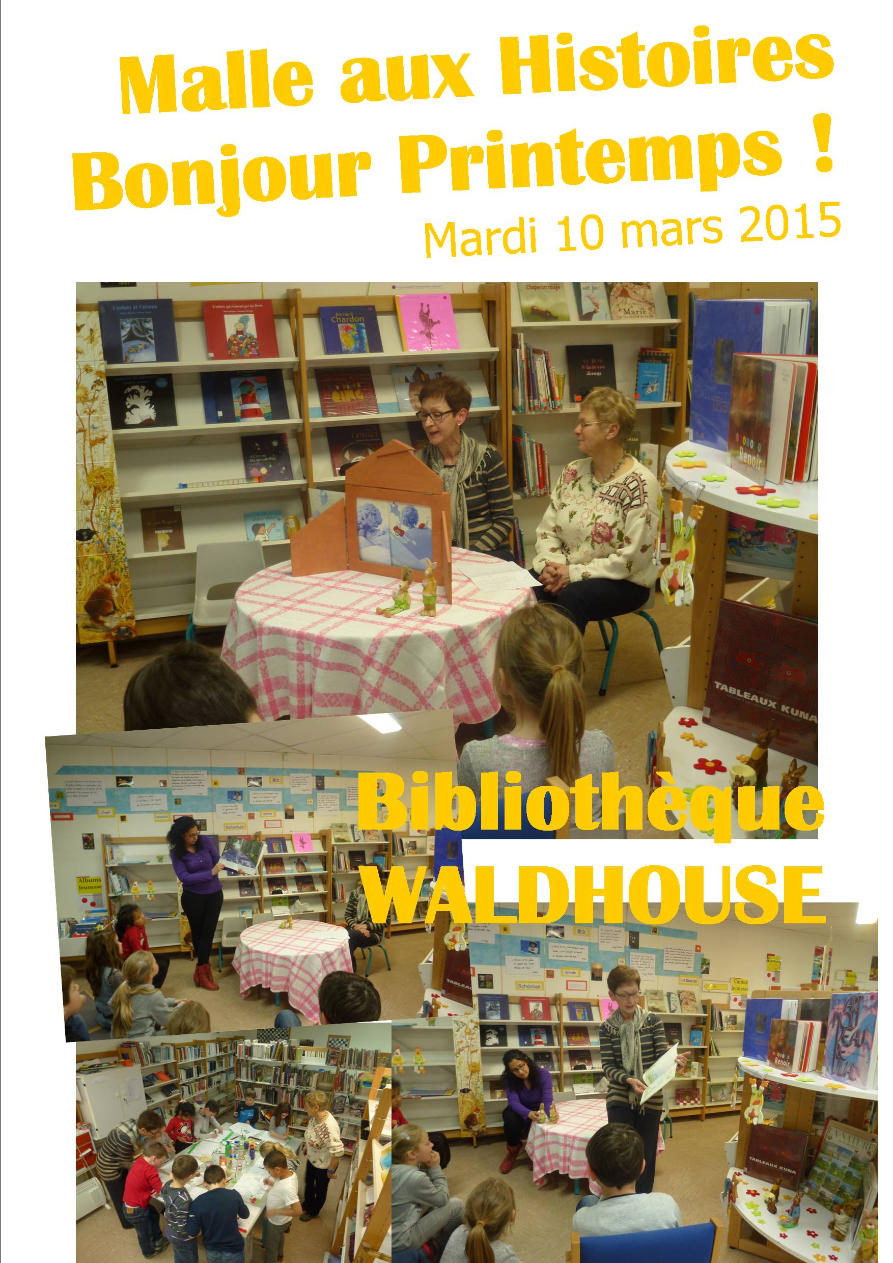 Animations, Malle aux Histoires [Malle aux histoires Bibliothèque de WALDHOUSE] 17 mars 2015 M3diatheque Laisser un commentaire C’était la semaine dernière …et le Printemps est arrivé !