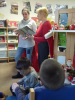 Lecture du kamishibaï de Thierry Chapeau « Mon beau sapin » à quatre voix Myriam, Aurélie, Stéphanie, Blandine.