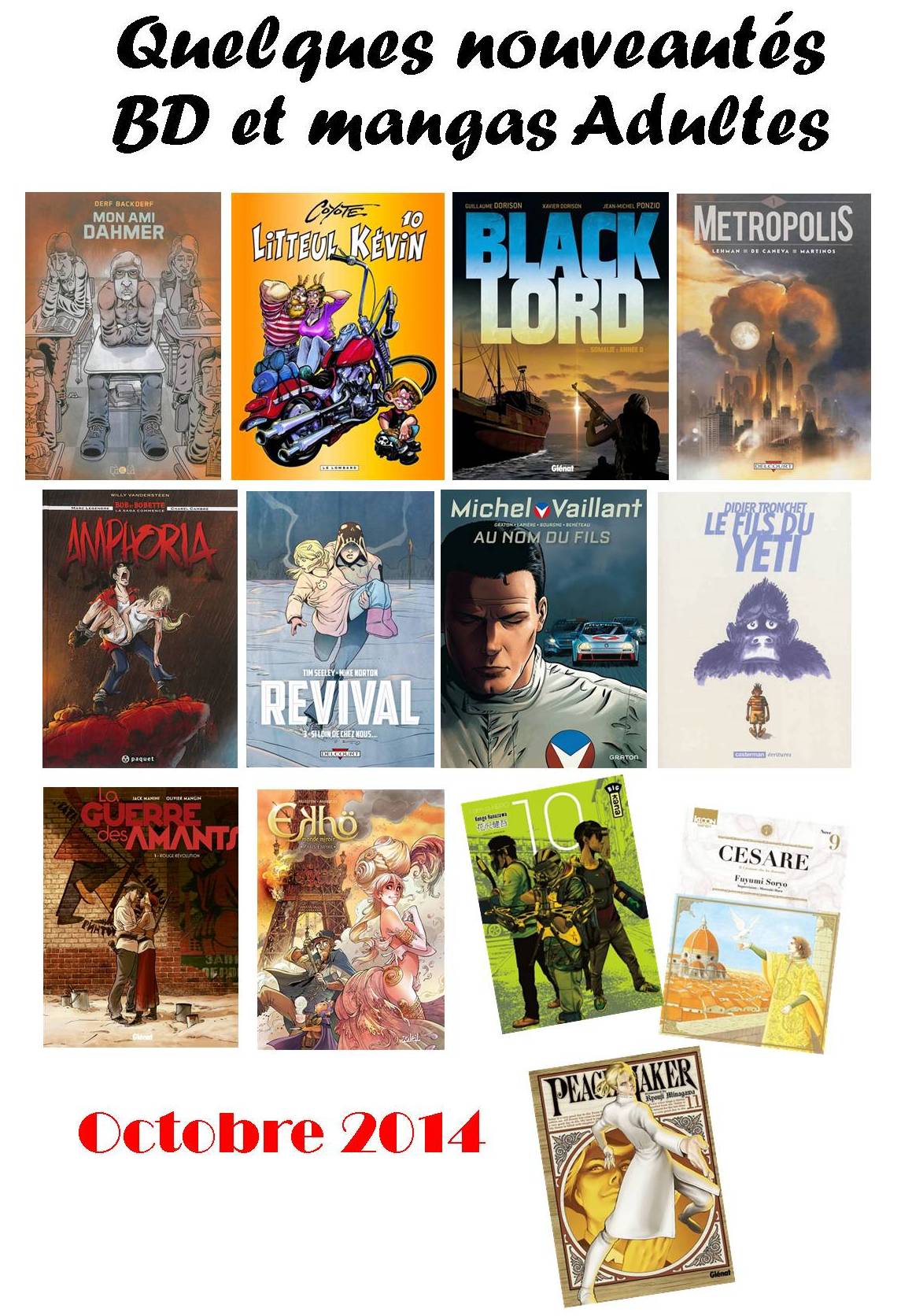 En octobre, côté BD, découvrez Mon Ami Dahmer, Metropolis, Litteul Kevin n°10, Black Lord, Amphoria, Le fils du yéti, Michel Vaillant, Revival, Ekho et la Guerre des Amants…
