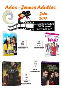 Nouveautés, Pôle Ados/Jeunes Adultes, Vidéo [ADOS-JEUNES ADULTES] NOUVEAUTES DVD DE JUIN 6 juin 2017 M3diatheque Laisser un commentaire Découvrez les nouveautés DVD de juin dans l’Espace DVD, sur le palier !