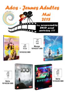 Nouveautés, Pôle Ados/Jeunes Adultes, Vidéo [ADOS-JEUNES ADULTES] NOUVEAUTES DVD DE MAI. 5 mai 2018 M3diatheque Laisser un commentaire Découvrez les nouveautés DVD de mai dans l’Espace DVD, sur le palier !