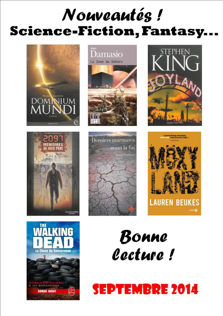 Les nouveautés SF, fantasy, horreur… de septembre sont disponibles dans l’Espace Adultes!