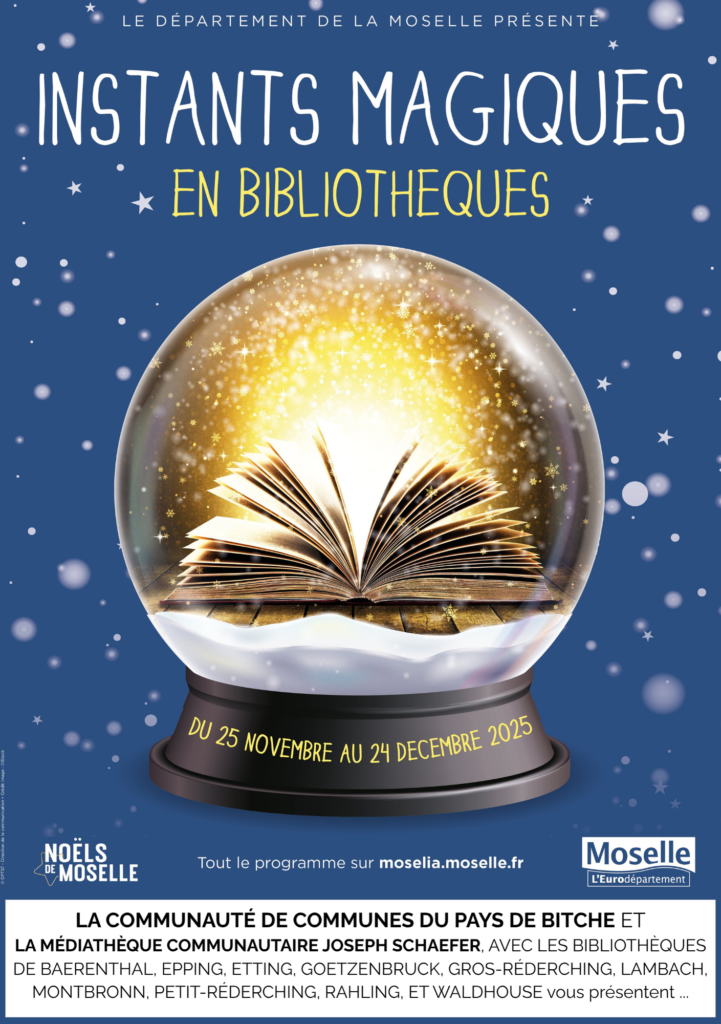 🗓 Du 26 novembre au 24 décembre 2024, à la Médiathèque communautaire Joseph Schaefer et dans les 📚 bibliothèques du Pays de Bitche, venez vivre des instants magiques ! 🤩